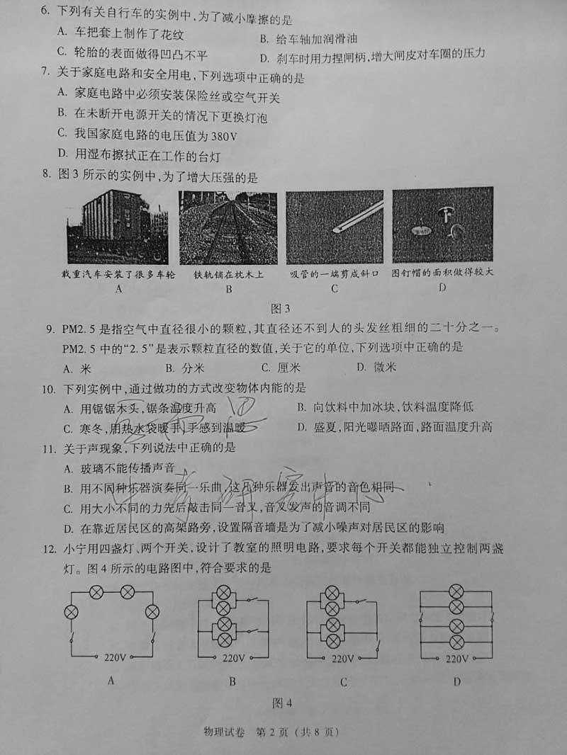 2017年北京中考物理化学真题和答案及word试卷