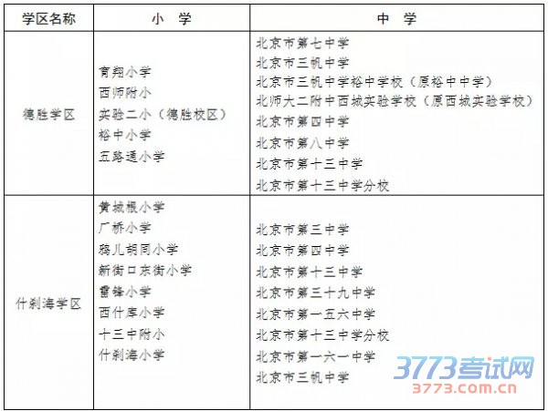 2017年北京西城区小学初中学区划片学校一览表