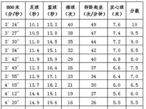2017年北京中考女生体育考试各项评分标准