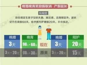 四川拟规定:夫妻可休产假陪护假178天 暂居全国第一 四川人注意了,今后合法生育孩子的夫妇,女方可以延长生育假60天,男方也有20天的护理假。也就是说,合法生娃娃,女方起码能享受158天产假;若按男女方合计,四川夫妇生个娃娃,不管大娃二娃,夫妻一共至少休假178天,休假天数暂居全国第一。 根据国家“全面二孩”政策,我省原有条例应当修订。1月22日,四川省十二届人大常委会第二十一次会议审议《四川省人口与计划生育条例修正案》(草案),通过后就会据此执行。 98+60+20 川人生娃娃夫妻可休178天 按照国家..…[详情]