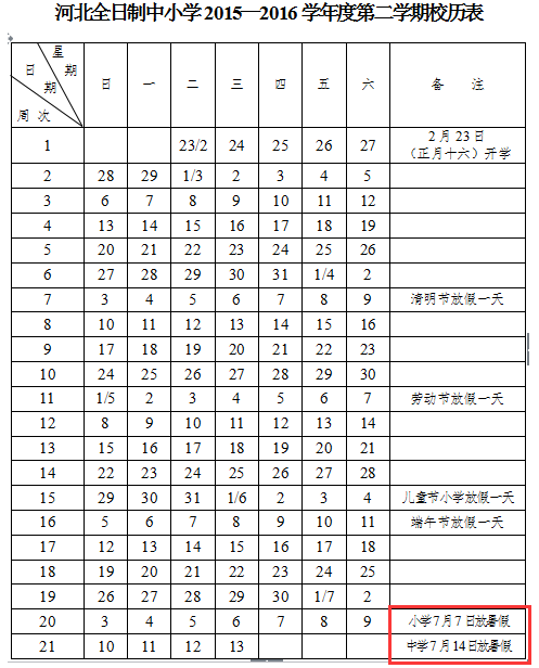 2016河北省中小学暑假放假时间公布了吗?各位同学们一定迫不及待的想要知道今年河北省各校暑假放假时间了吧,为了让同学们更好的安排假期生活,快车教育小编根据2015-2016学年整理了2016河北省中小学暑假放假时间安排,供各位同学们参考! 根据《河北省2015-2016学年中小学校历》,2016河北省中小学暑假放假时间安排如下: 1、河北省小学暑假放假时间:2016年7月7日-8月31日,共55天。 2、河北省中学暑假放假时间:2016年7月14日-8月31日,共48天。…[详情]
