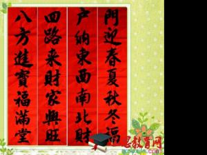 2017年鸡年七字春节对联大全(带横批) 春联俗称“门对”、“春贴”、“对联”、“对子”,雅称“楹联”。古代的汉族民俗文化。喜庆的大红春联是对联的一种,在春节时张贴,故名春联。春联的来源其一是桃符。最初人们用以避邪,后来画门神像木刻人形应挂在门旁于桃木上,再简化为在桃木板上题写门神名字。春联的另一来源是春贴,古人在立春日多贴“宜春”二字,后渐渐发展为春联,表达了汉族劳动人民一种辟邪除灾、迎祥纳福的美好愿望。 1.上联:日出江花红胜火下联:春来江水绿如蓝横批:鸟语花香 2.上联:日日财源顺意来下..…[详情]