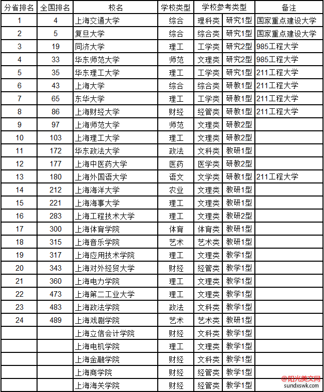 上海市大学排名 | 学校名称 | 学校类型 | 全国排名 |