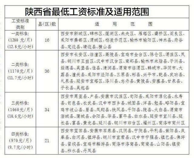 2017年陕西省最低工资标准及适用范围