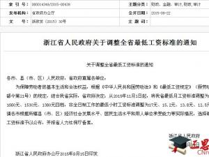 2017年浙江省最低工资标准调整时间及最新调整规定