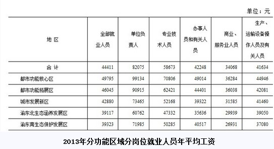 2017年重庆首次发布2017年不同岗位平均工资