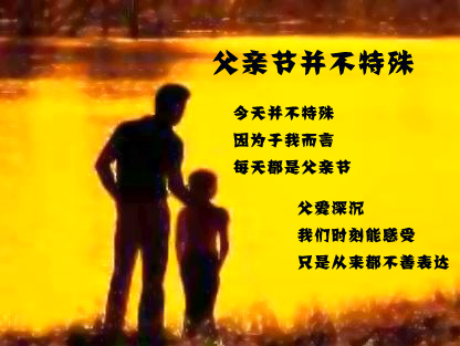 父亲节是一年中特别感谢父亲的节日,在一篇篇精彩的帖子中我们感受到了父亲那伟大、无私、深沉、宽广的爱。虽然今日一般人对于父亲节的庆祝活动不像对母亲节一般的重视与热闹,但是在教导我们的路上父母的关爱却是一致的,当母亲含辛茹苦地照顾我们时,父亲也在努力地扮演着上帝所赋予他的温柔角色。