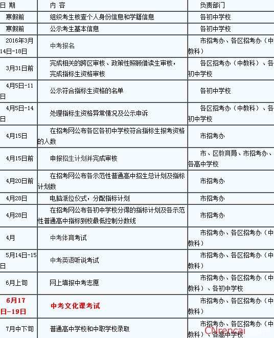 2016年广州中考时间安排通知 2016年广州中考时间:6月17日-19日。 中考安排时间表:…[详情]