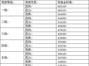 伤残民兵民工残疾抚恤金标准表