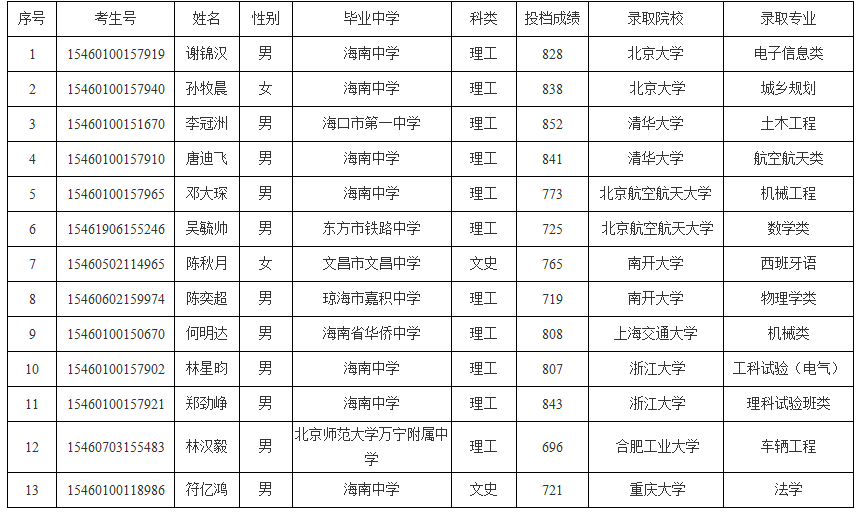 2016年海南高考自主招生录取结果查询和录取通知书发放时间2016年海南高考高校自主招生录取名单公示 我省13人上榜 南国都市报7月30日讯(记者许欣)今年全国普通高校自主招生录取海南考生名单于30日起在海南省考试局官方网站公示,在北京大学、清华大学、浙江大学、上海交通大学、南开大学、北京航空航天大学等8所高校录取名单中,我省13名高考生榜上有名。 北京大学、清华大学、浙江大学、南开大学、北京航空航天大学通过自主招生渠道分别在我省录取2人,上海交通大学、合肥工业大学、重庆大学通过自主招生渠道分别在我省录取1..…[详情]