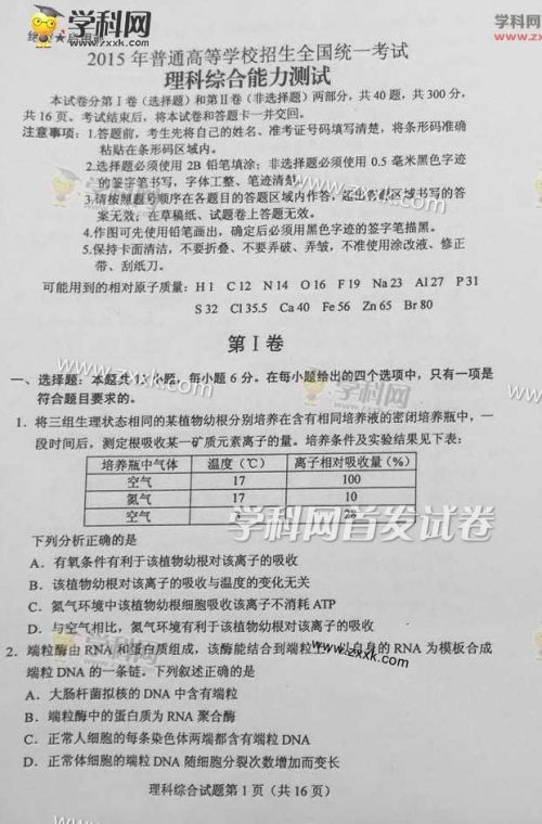 2017年吉林高考理综难度解析及理综试卷答案点评(word文字版下载)