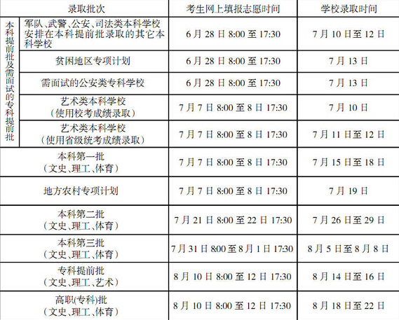2017年海南高考三本院校志愿填报和征集志愿补录时间