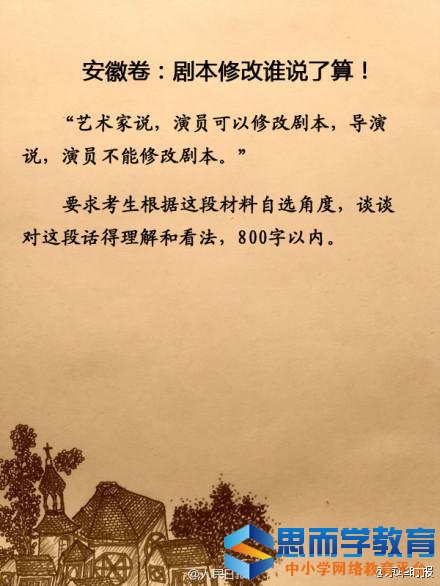 思而学教育将在10分钟后公布今年的高考试卷作文题目,请10分钟后刷新本页或者收藏本页。…[详情]