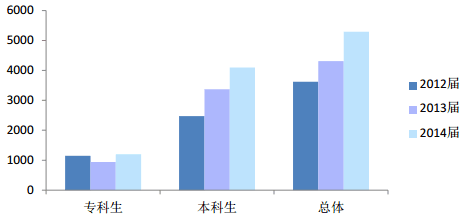 长沙医学院就业情况怎么样高考填报志愿时长沙医学院就业情况怎么样一直是同学们十分关心的问题,以下是长沙医学院就业指导中心2015年发布的长沙医学院就业质量报告,当然每一年的就业情况、就业率变化都不大,供大家参考。毕业生结构长沙医学院 2014 届共有毕业生 5294 人,其中本科 4125 人,专科 1169 人,与 2013 届毕业生相比略有上升(2013 届 4311 人)。2014届各学历层次毕业生人数如下图所示。对比近三年的数据发现,我校本科毕业生人数逐年增长,专科毕业生人数相对稳定。根据我校毕业生初次就业情况统计,毕业生在医疗卫生单..…[详情]