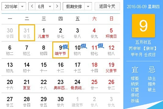 2016年端午节放假通知:放假攻略 方案一:2016年6月9日星期四 6月10日星期五 6月11星期六 共放假3天 提示 6月12日星期天 正式上班…[详情]