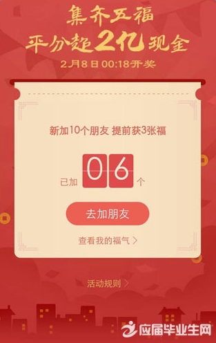 小编不为别的,就是为了揭穿更多的骗局…… 还在积福的伙伴们,先来看看,积福的攻略吧,接下来还会有详细的时刻表哦…… 支付宝集五福只差一福就能分2亿怎么办?千万别买 这几天大家是不是被支付宝的集五福活动刷屏了?只要集齐五张福卡,就能平分2亿元现金,这个可不是“有机会抽到”,而是集齐了就一定能分钱!所以,此活动一出瞬间点燃了所有人的热情。 玩法很简单,在支付宝APP的“朋友”里添加好友,新加够10个好友系统就会随机派发三张福气卡。不过,要知道这三张福气卡是随机的,也就是说可能是“富强福”、“..…[详情]