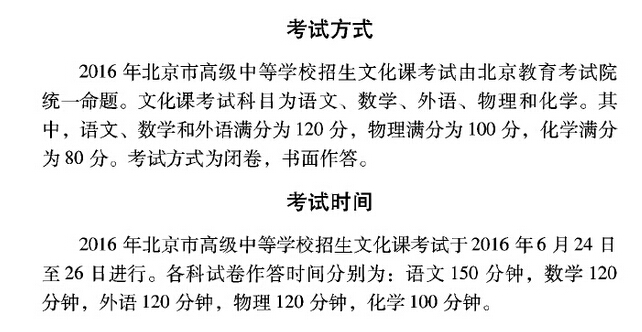 2016年北京中考时间为6月24日-6月26日和考试科目总分设置…[详情]
