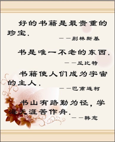 1、人之所以有一张嘴,而有两只耳朵,原因是听的要比说的多一倍。 2、哲人无忧,智者常乐。并不是因为所爱的一切他都拥有了,而是所拥有的一切他都爱。 3、泪水和汗水的化学成分相似,但前者只能为你换来同情,后者却可以为你赢的成功。 4、越是成熟的稻穗,越懂得弯腰。 5、江海之所以能成为百谷之王,是因为懂得身处低下。…[详情]