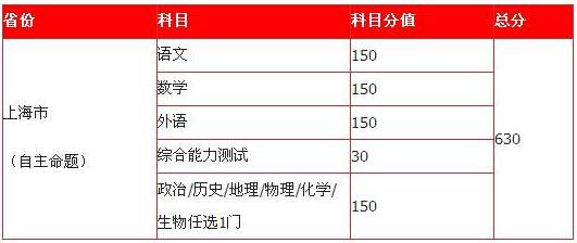 2017年上海高考总分科目设置,上海高考总分数多少分