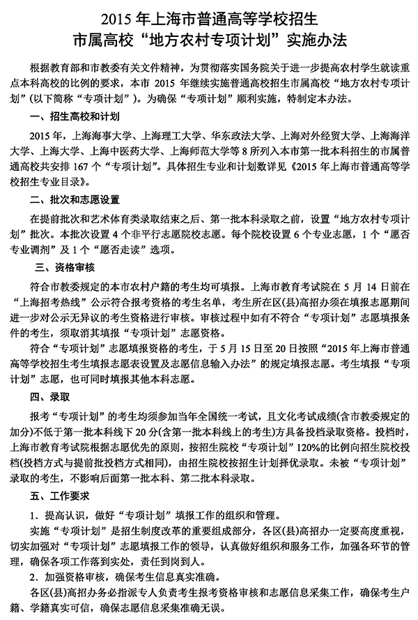2017年上海高考农村专项招生计划及农村专项招生计划大学名单报名条件