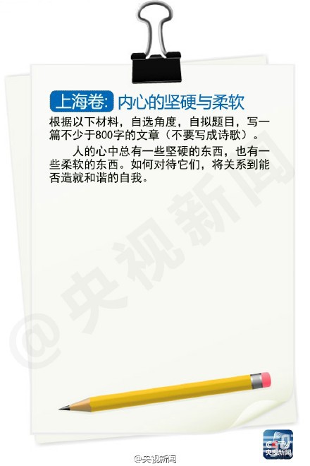 2015年上海高考语文作文题目如下: 根据以下材料,自选角度,自拟题目,写一篇不少于800字的文章(不要写成诗歌)。 人的心中总有一些坚硬的东西,也有一些柔软的东西,如何对待它们,将关系到能否造就和谐的自我。 …[详情]