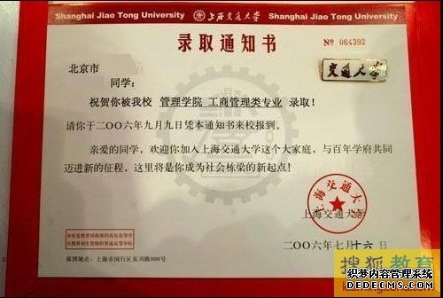 上海一本录取通知书什么时候下来,2016年上海一本录取通知书什么时候下来本文目录:1、上海一本录取通知书什么时候下来2、2016年上海一本大学录取通知书发放流程3、2016年上海一本录取通知书什么时候下来4、2016年上海一本大学排名2016年高考已经结束,考生们填报过志愿,最关心的事也许就是高考录取通知书的发放 了。报考上海工商大学的同学们会问,上海工商大学的录取通知书什么时候发放呢?思而学教育 www.gxscse.com带来2016年上海工商大学录取通知书发放时间和方式介绍。上海一本录取通知书什么时候下来既然考生都很期待..…[详情]