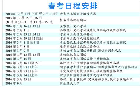2017年上海春季高考改革方案公布 时间日程安排