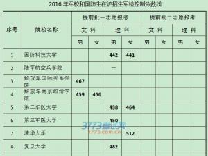 2015年上海高考各军校参加面试、军检分数线…[详情]