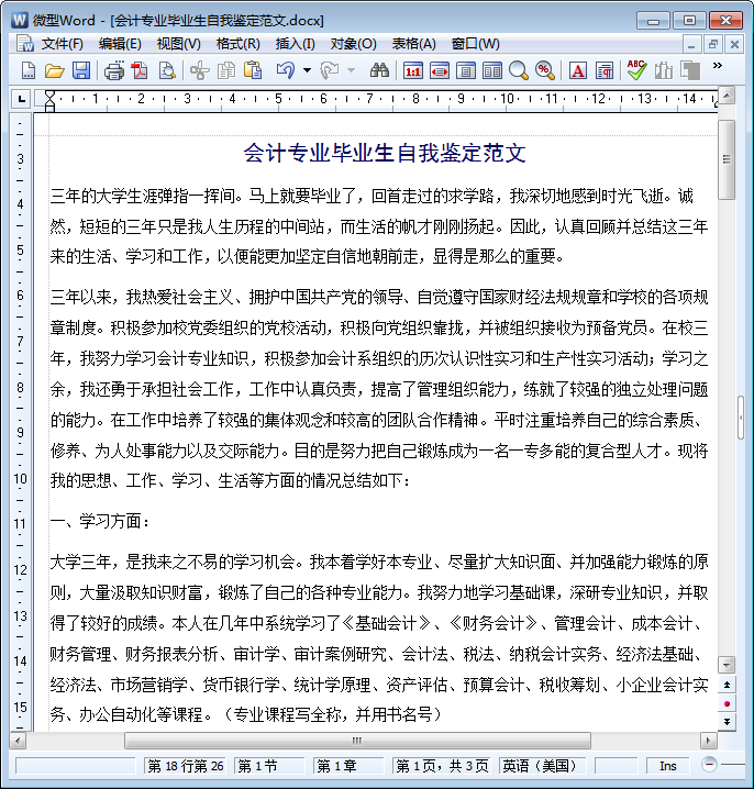 大四学年鉴定表自我鉴定范文