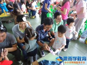 6、猜谜接力:自由组合成为二组,每组六人,组成为三对父子(女)。由第一个人看工作人员所给的资料,不能说话,用动作来表示资料中所写文字。传到最后一个人的时候,两组中最先猜中答案组组员获得奖励。