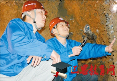 在前门地铁车站的地下隧道里,一位头戴红色安全帽、身穿蓝色工作服的中年男子爬上作业平台,认真地观察着作业面的情况,并不时提醒工人一些注意事项。此刻,他满是灰尘的脸上挂满了汗水,而鞋子、裤腿则密密麻麻地溅着泥浆。